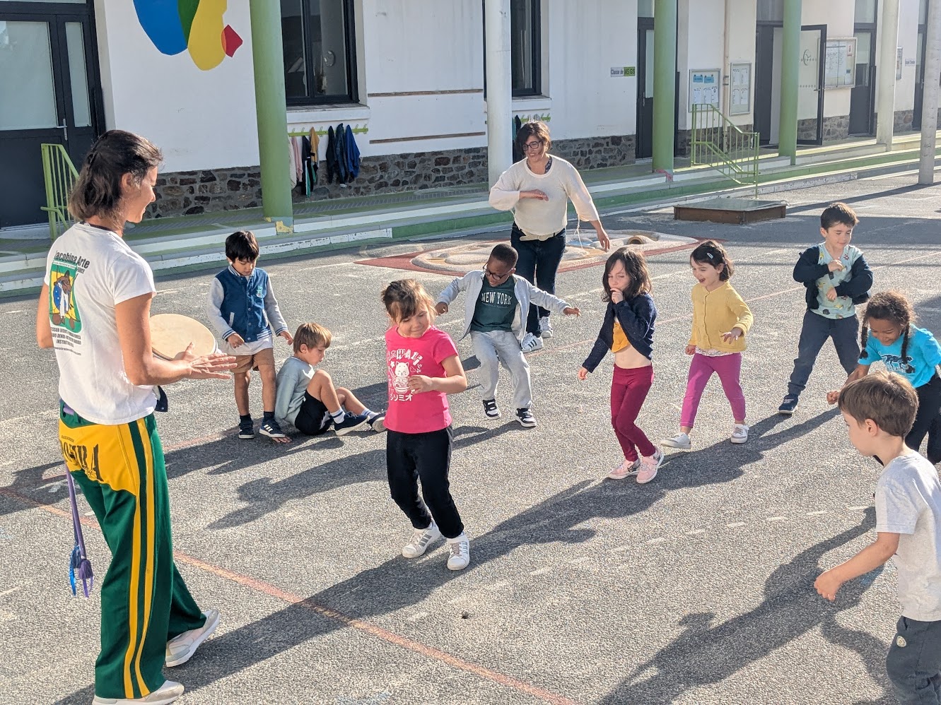 Cette année, les élèves de la GS au CM2 pratiqueront de la Capoiera, une découverte sportive, culturelle et musicale. Pour cette première période, ce sont les CMA et les GS qui ont démarré avec Julie l’intervenante. Un GRAND merci à l’APEL pour le financement de cette activité originale.