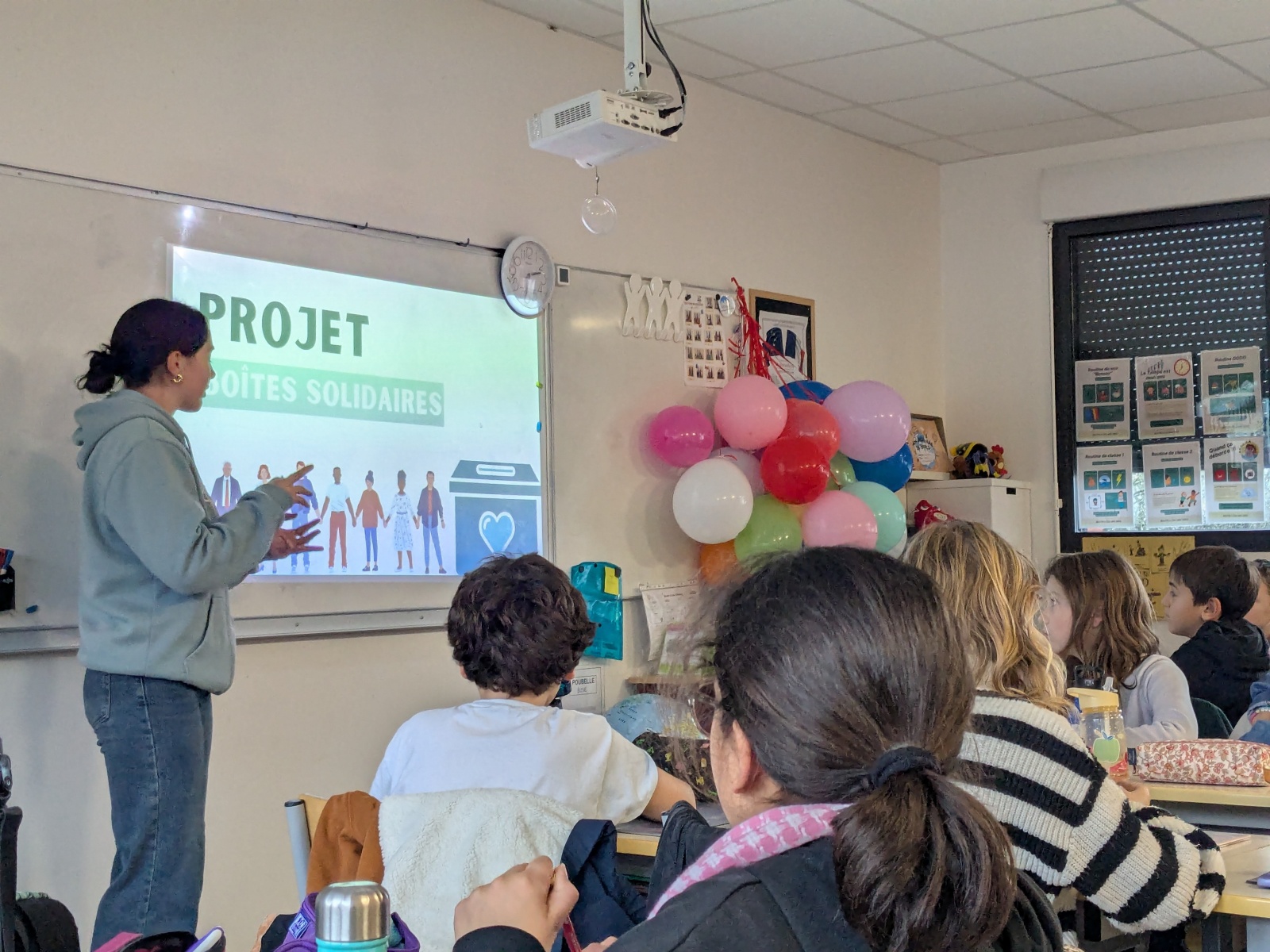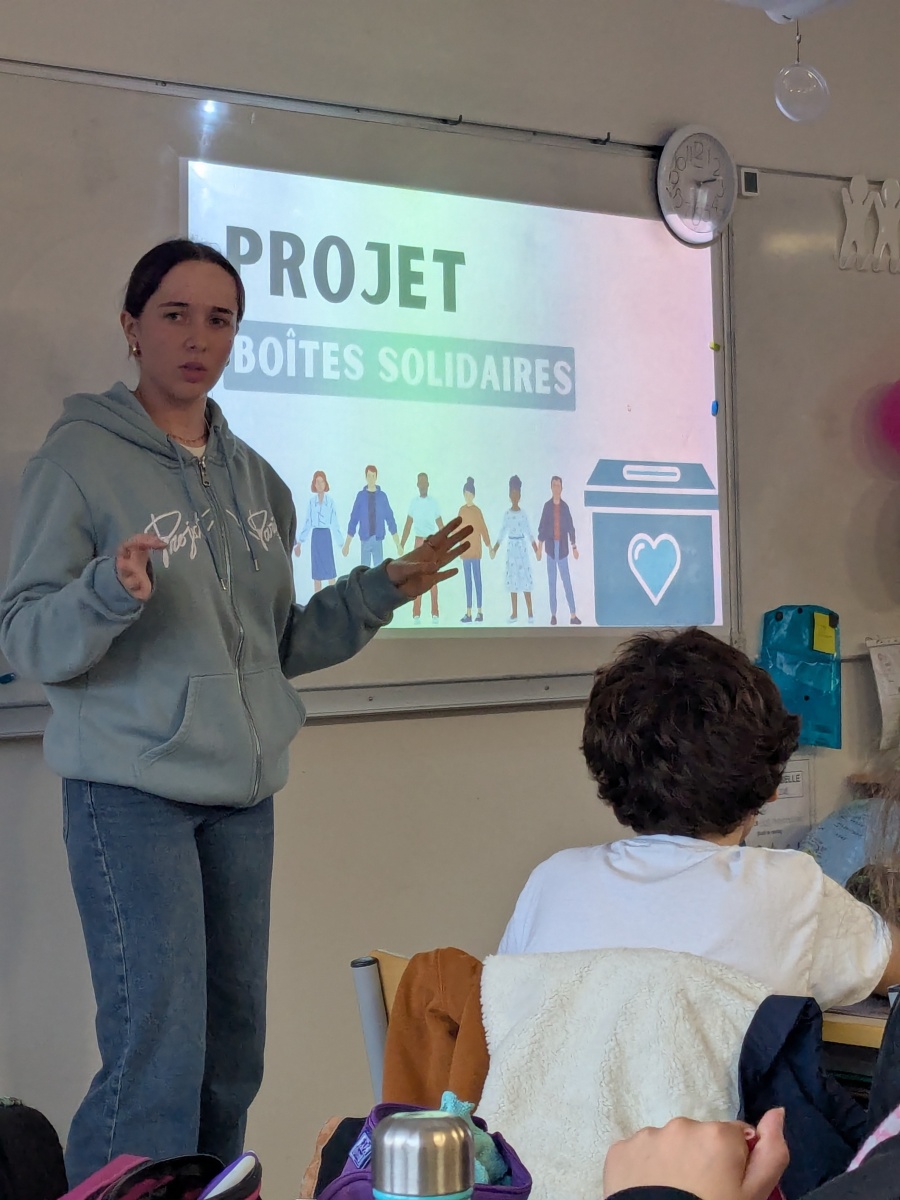 Inès, ancienne élève de Ste Thérèse aujourd’hui en première, est venue présenter un projet intitulé “Les boîtes solidaires.”