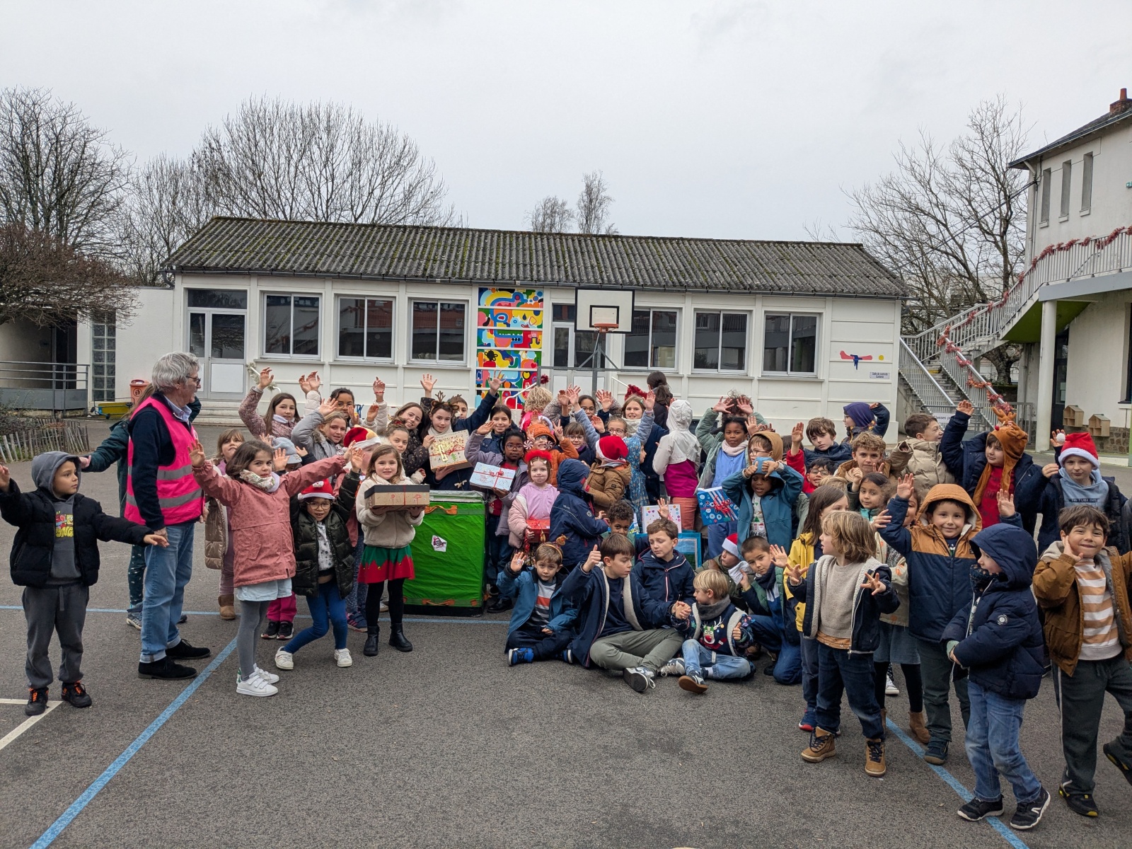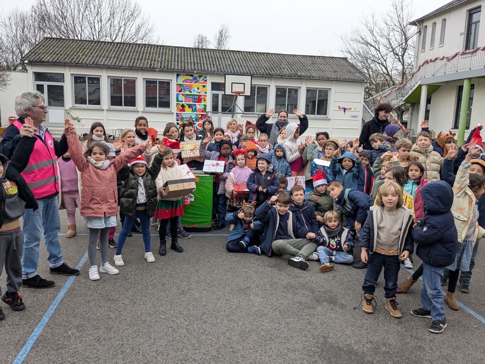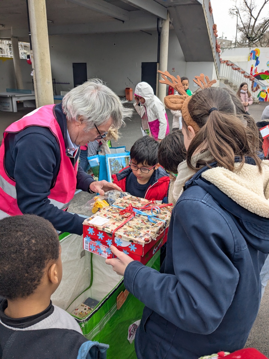 L’objectif était de réaliser des boîtes (boîtes à chaussures remplies de dons divers : aliments, jeux, vêtements, livres etc…) à offrir à des personnes fragiles et démunies par le biais des Restau du coeur.